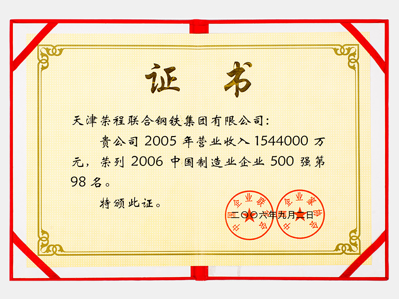 2005年?duì)I業(yè)收入1544000萬(wàn)元,榮列2006中國(guó)制造業(yè)企業(yè)500強(qiáng)第98名